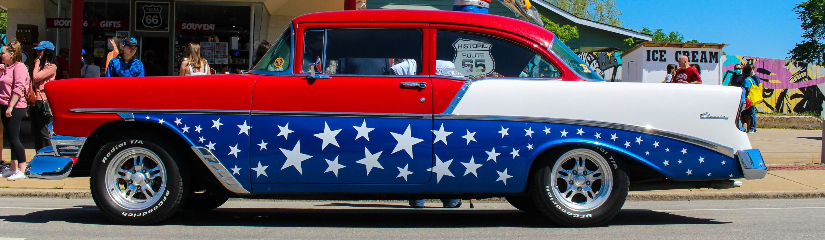 During WWII, troop convoys and supplies moved west on Route 66. All along that route, gas stations, motels, and diners stayed open 24 hours to keep the military fed and fueled. The war gave the road a purpose bigger than mere wanderlust.
